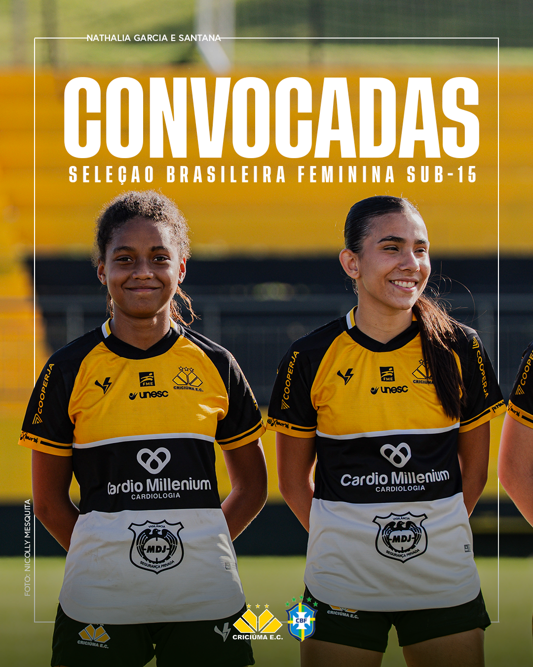 O Criciúma parabeniza Santana e Nathalia pela conquista e deseja um excelente período de preparação com a Seleção Brasileira.