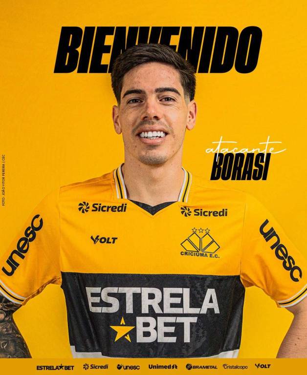 O Criciúma confirmou neste sábado (26/07) o acerto com o atacante Benjamín Borasi, por empréstimo do Sarmiento de Junín, da Argentina. O atleta, que atuou no Paysandu nas duas últimas temporadas, já está com o nome registrado no Boletim Informativo Diário (BID) da Confederação Brasileira de Futebol (CBF) e será a nova peça do sistema ofensivo do técnico Eduardo Baptista para a disputa das competições da temporada.