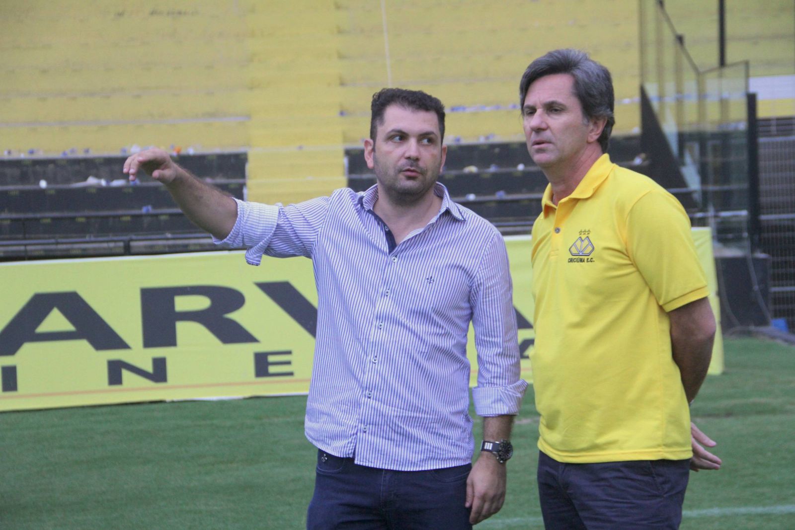 Diretor Claudio Gomes e o técnico Caio Júnior. Foto: Fernando Ribeiro/criciumaec.com.br
