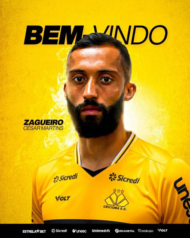 O Criciúma confirmou nesta quarta-feira (17/12) a primeira contratação para o setor defensivo da equipe. O zagueiro César Martins, que atuou no Novorizontino nas três últimas temporadas, é o novo reforço da equipe do técnico Eduardo Baptista para as competições do próximo ano. O atleta já se apresentou com o elenco carvoeiro no Centro de Treinamento Antenor Angeloni dando início a pré-temporada.