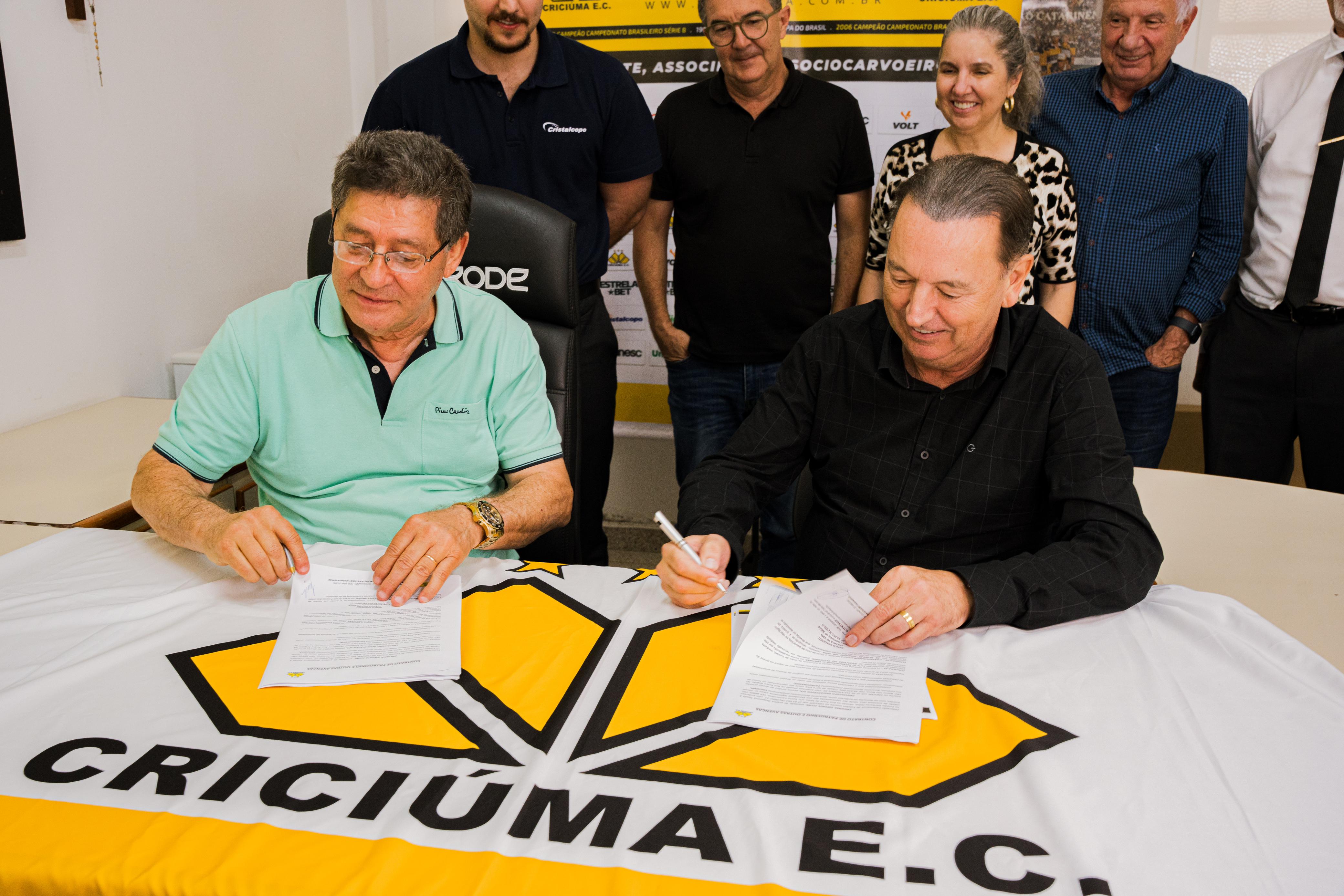 "É com imensa alegria que renovamos o contrato de patrocínio com a Cristalcopo para o próximo ano. Essa parceria é uma união de valores, de comprometimento, de sucesso, e estamos ansiosos para mais um ano de conquistas juntos", declara o presidente do Criciúma, Vilmar Guedes.