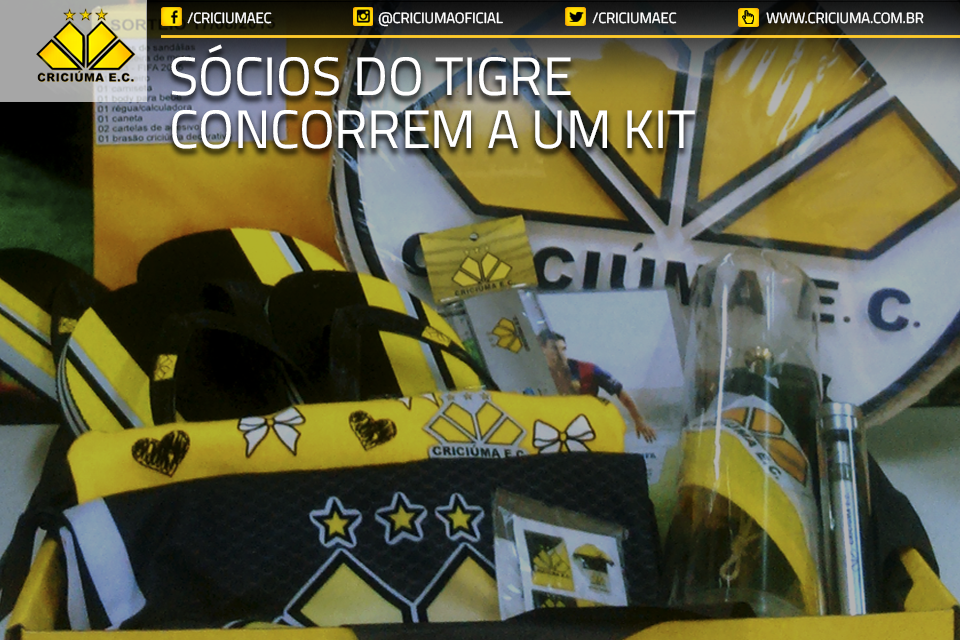 Os sócios em dia com o Criciúma estão concorrendo a um grande prêmio. O clube sorteia no próximo dia 17 de agosto um kit com produtos oficias do Tigre. A ação faz parte da campanha “Sócio de Verdade é Sócio em Dia”. O resultado do sorteio será divulgado nos canais de comunicação do time carvoeiro.