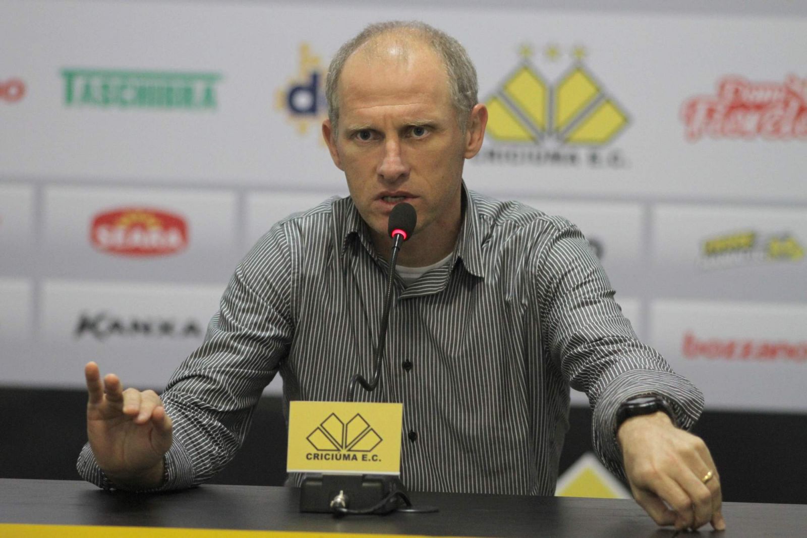 Sílvio Criciúma deixou o comando da comissão técnica do Tigre na manhã desta terça-feira (24/09). Durante a tarde, o ex-treinador do Criciúma concedeu entrevista coletiva na Sala se Imprensa Clésio Búrigo, no estádio Heriberto Hulse, e agradeceu a oportunidade que teve no clube para iniciar sua carreira como técnico de futebol. Como treinador do Tigre, Sílvio Criciúma comandou a equipe em nove jogos e somou três vitórias, dois empates e quatro derrotas.