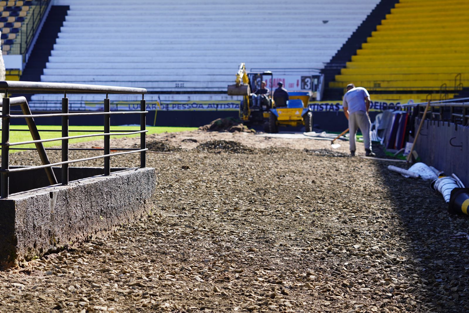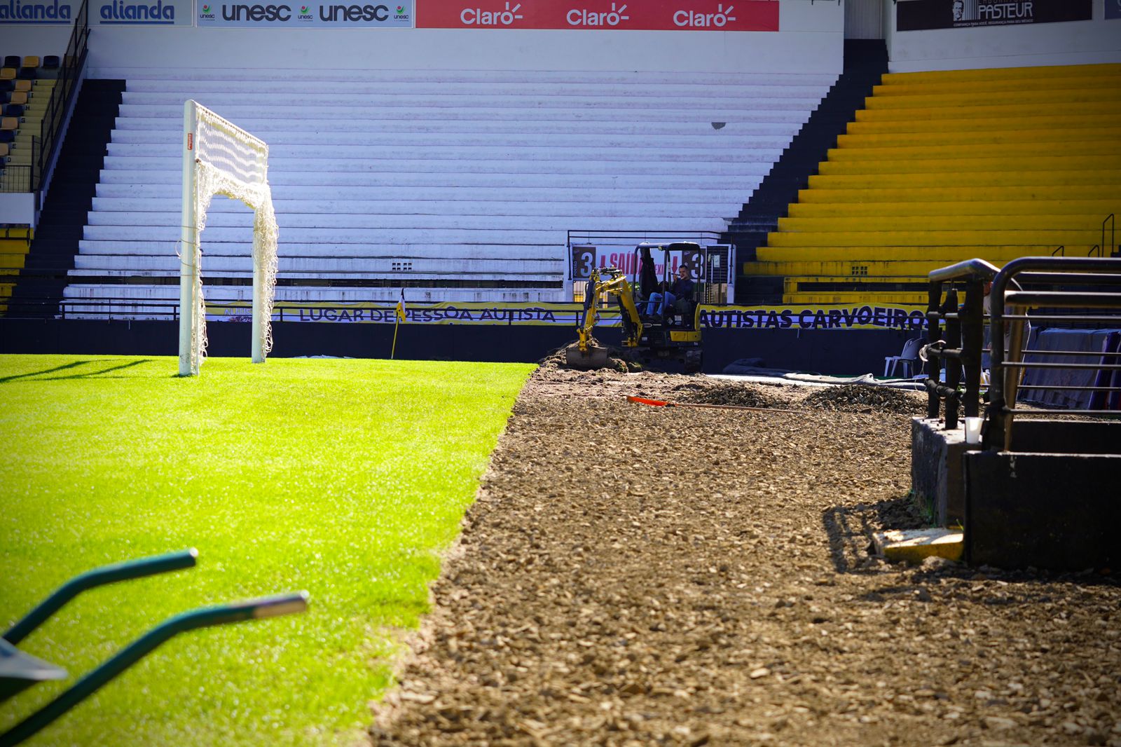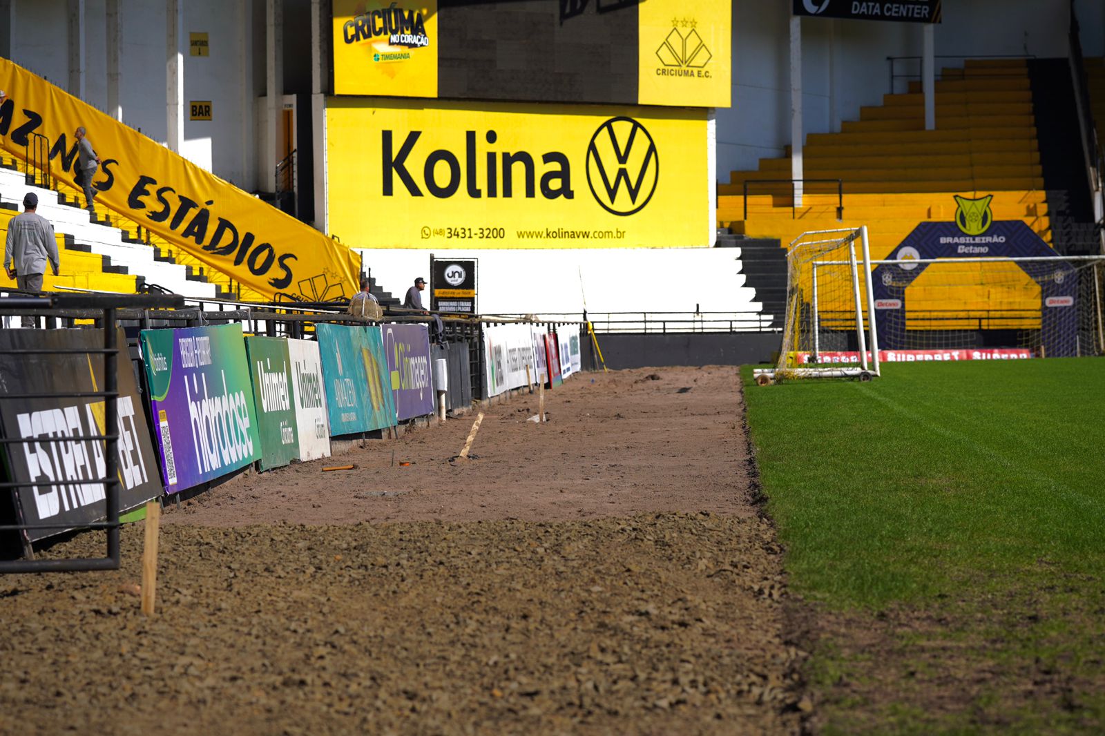 “Em razão das colocações das placas publicitárias, a grande circulação de pessoas e carrinho para conduzir as placas, acabou danificando muito a grama que havíamos colocado e em decorrência das chuvas que estão castigando nosso estádio. Nós resolvemos investir em colocar grama sintética em volta de todo o estádio, vai ser de muita praticidade para a colocação das placas, circulação de jogadores, e imprensa de modo geral” ressalta o vice-presidente administrativo do Criciúma, Alexandre Farias.