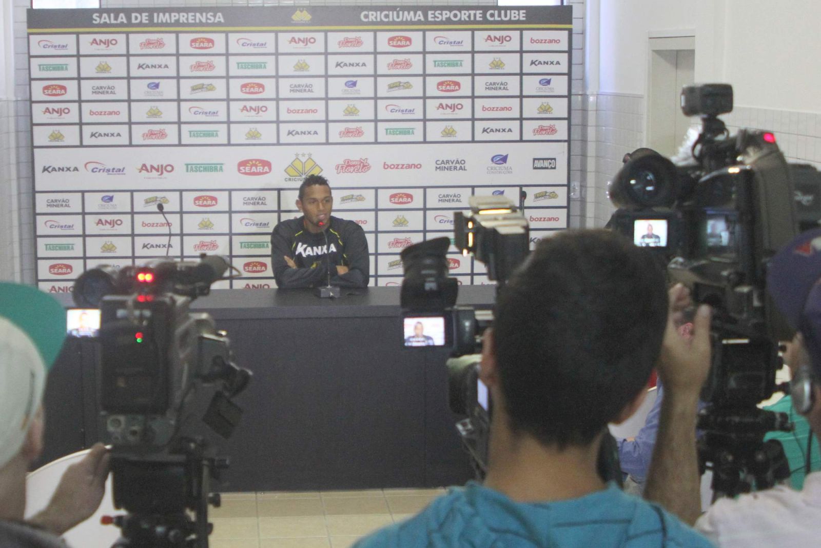 Gilson e Marcel concederam entrevistas no clube. Foto: Fernando Ribeiro/Criciúma E. C.