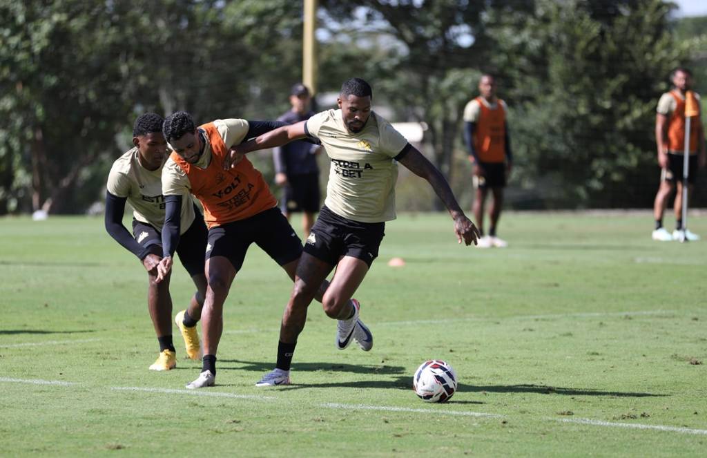 O treinamento iniciou com um aquecimento com bola, seguido de um trabalho técnico de troca de passes, aceleração e finalizações. Depois, o técnico Zé Ricardo posicionou a equipe e organizou os jogadores em campo.