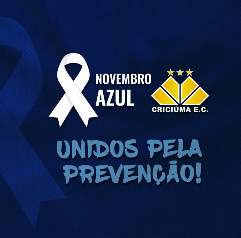 O Criciúma Esporte Clube, no limiar deste mês novembro, o qual faz-se referência ao Novembro Azul, no tocante a proteção da saúde masculina frente ao câncer de próstata, vimos nos colocar junto nesta batalha a prevenção e cuidado não somente em novembro, mas durante todo ano, principalmente aos homens com idade superior a 40 anos. A cor azul faz um link com as cores familiarizadas ao antigo Comerciário E.C, hoje com a união de toda região sul, de modo especial a região carbonífera, que com sua bravura, entendimento e sabedoria fez surgir o Criciúma Esporte Clube. Fica aqui nossa homenagem a todos os homens que a manutenção da saúde via prevenção é uma obrigação, muito à frente dos compromissos e deveres profissionais, entendemos que somente tendo saúde, podemos desfrutar, trabalhar e vibrarmos com nossas famílias tendo o Criciúma como time do coração. Procure seu médico, faça exame preventivo PSA e de Toque anualmente.