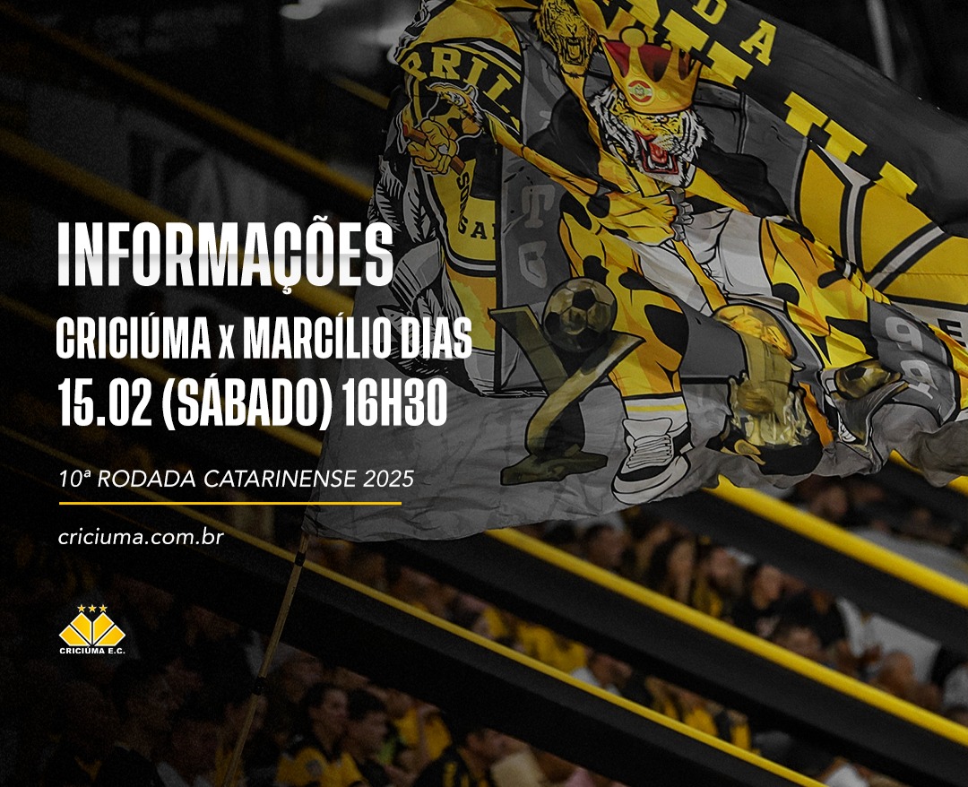Neste sábado (15/02), o Criciúma enfrenta o Marcílio Dias, pela 10ª rodada do Campeonato Catarinense.