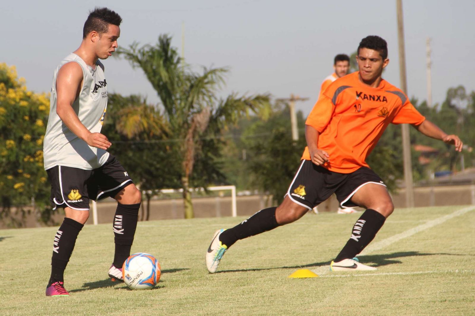 Lulinha e Diego Oliveira durante o treino. Foto: Fernando Ribeiro/www.criciumaec.com.br