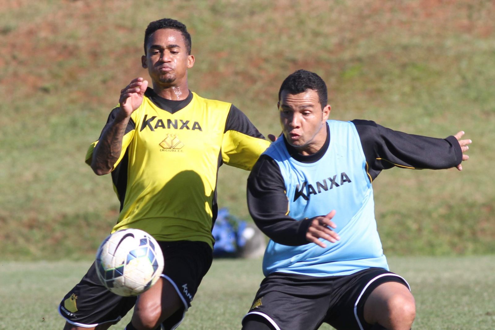 Eduardo e Cristiano disputam a bola. Foto: Fernando Ribeiro/www.criciumaec.com.br