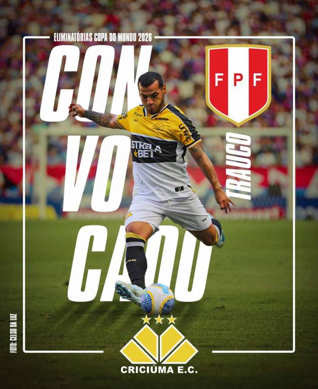 O lateral-esquerdo Miguel Trauco foi convocado pela Seleção Peruana para a disputa das Eliminatórias Sul-Americanas da Copa do Mundo de 2026. O atleta do Criciúma está entre os 30 escolhidos do técnico Jorge Fossati e defenderá o Peru nos jogos contra a Colômbia na sexta-feira (06/09), no estádio Monumental de Lima, e depois diante do Equador na terça-feira (10/09), no Estádio Rodrigo Paz Delgado, em Quito.
