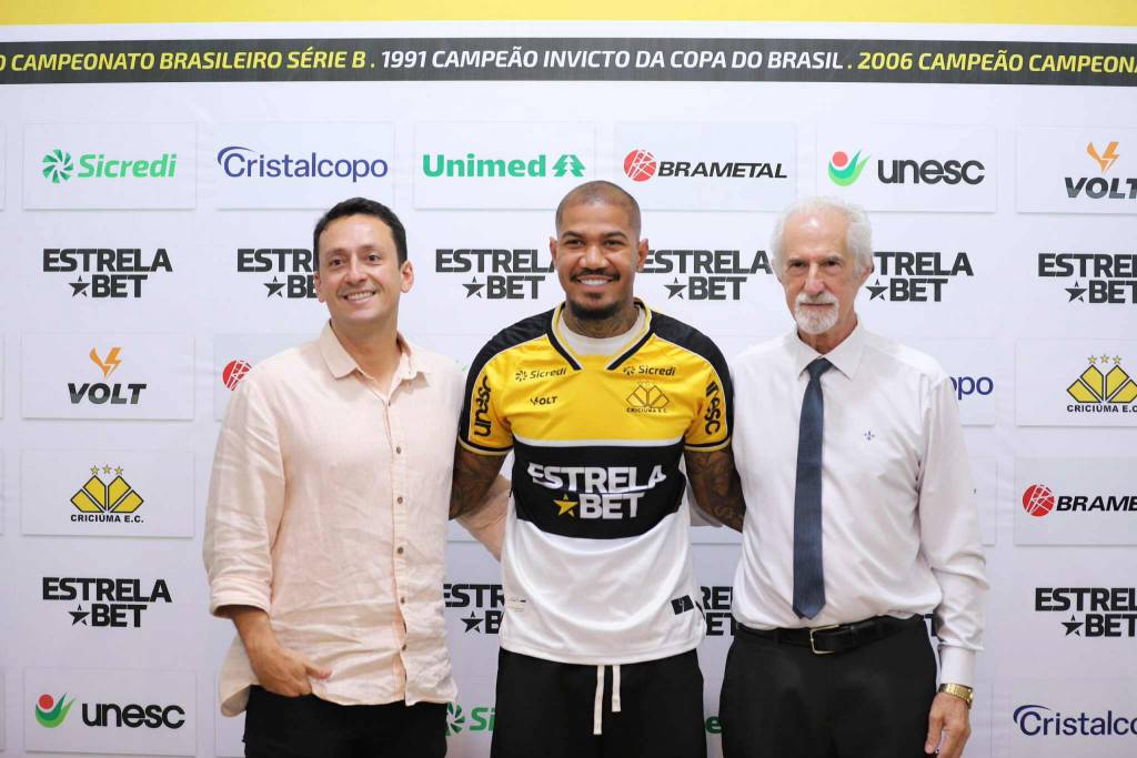 Executivo de futebol Ítalo Rodrigues, Zé Gabriel e o presidente Valter Minotto. Foto: João Vitor Pereira/ Criciúma E.C.