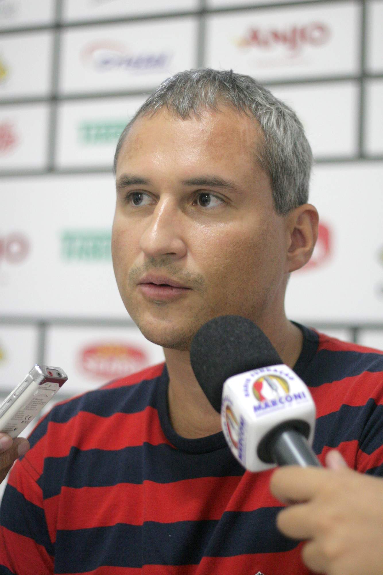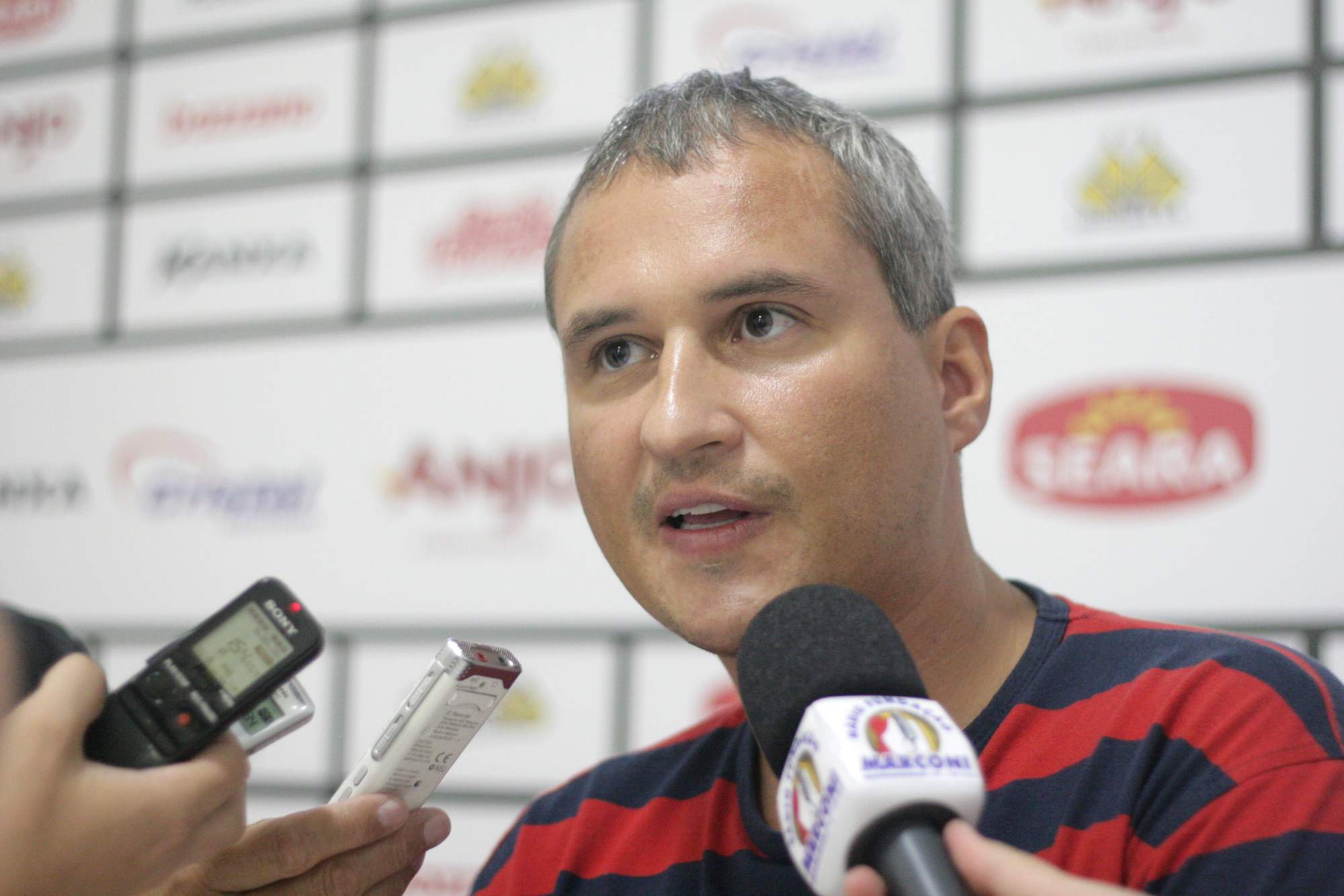 Legenda: Henrique Angeloni, administrador de obras, que concedeu entrevista coletiva na tarde desta quarta-feira (06/02), na sala de imprensa do estádio Heriberto Hülse