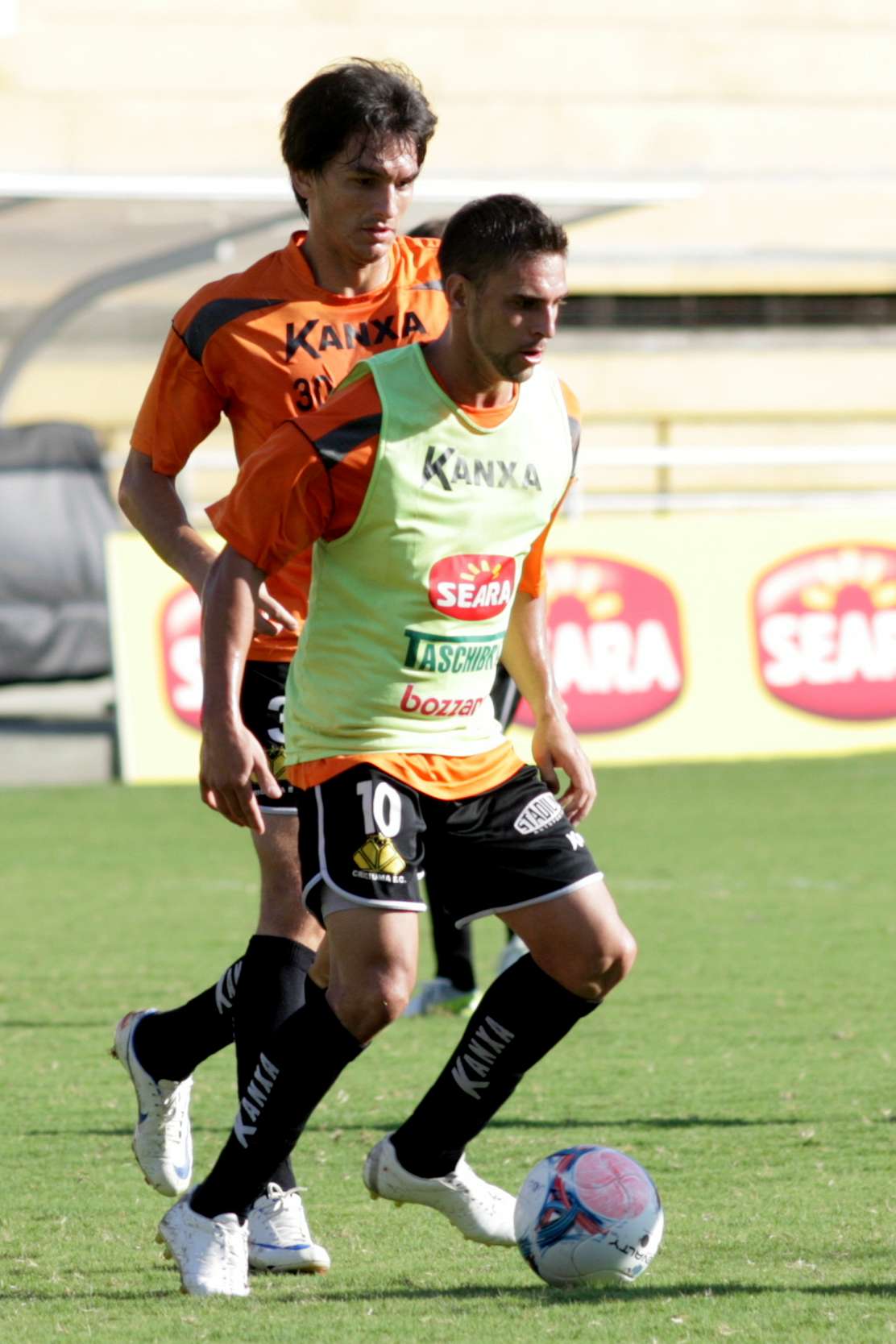 Legenda: Treino tático na manhã desta terça-feira (29/01) no estádio Heriberto Hülse. Na foto, Fábio Ferreira (E) e Sueliton (D)