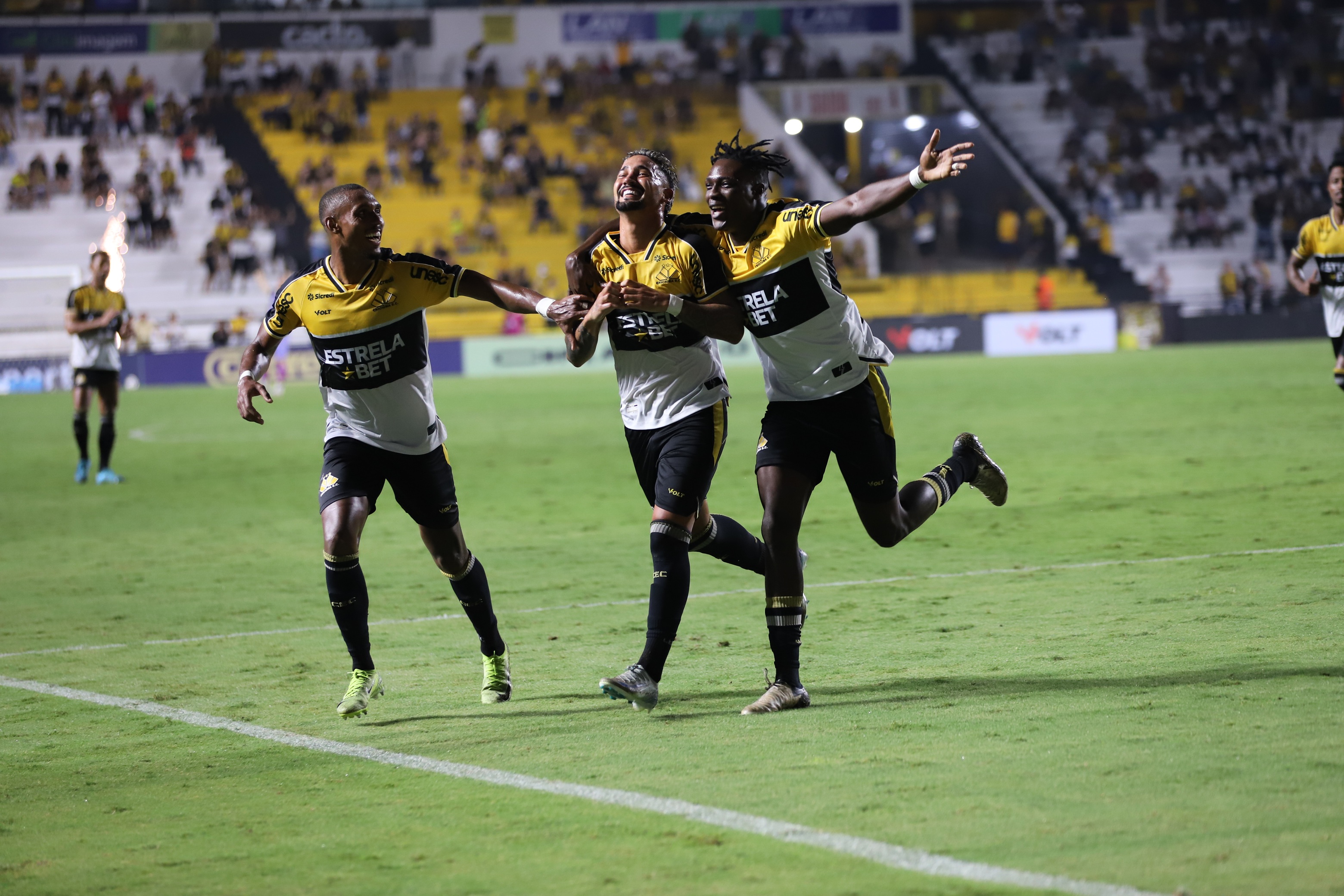 Legenda: Momentos de Criciúma x Athletic na noite desta quinta-feira (17/04) pela 3ª rodada da Série B do Campeonato Brasileiro.