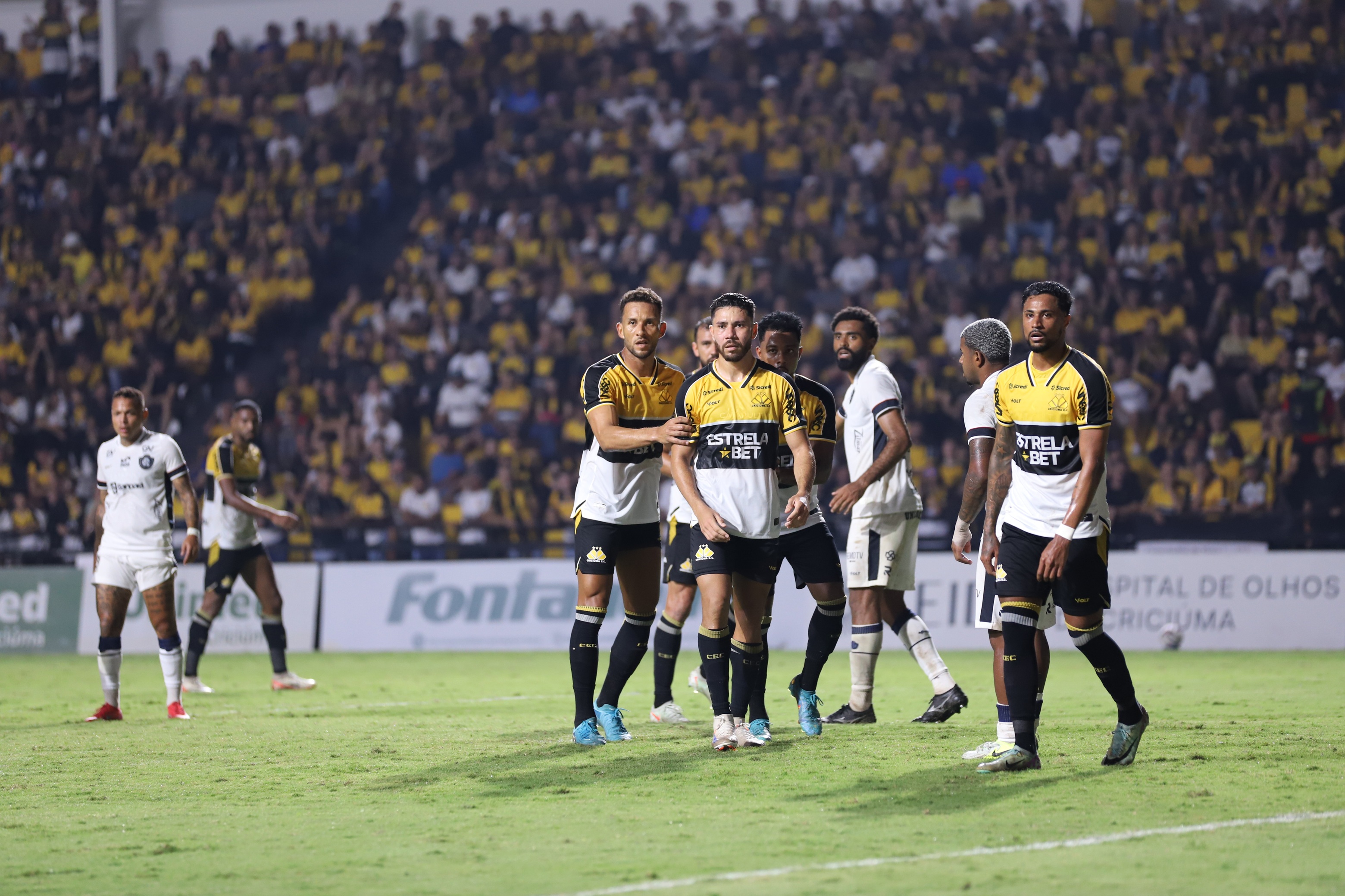 Legenda: Momentos de Criciúma x Remo na noite desta sexta-feira (25/04) pela 5ª rodada da Série B do Campeonato Brasileiro.