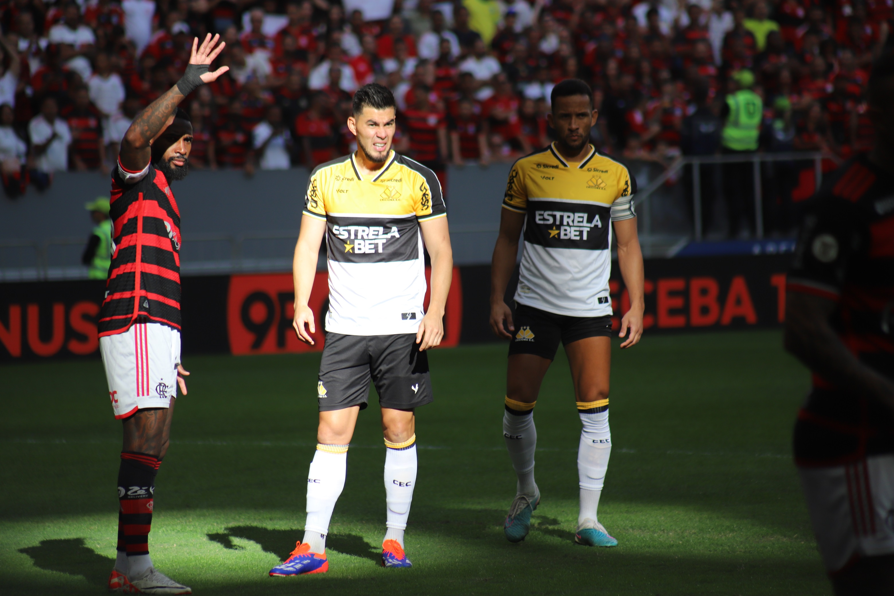 Legenda: Momentos de Flamengo x Criciúma na tarde deste sábado (20/07) na 18ª rodada da Série A do Campeonato Brasileiro.