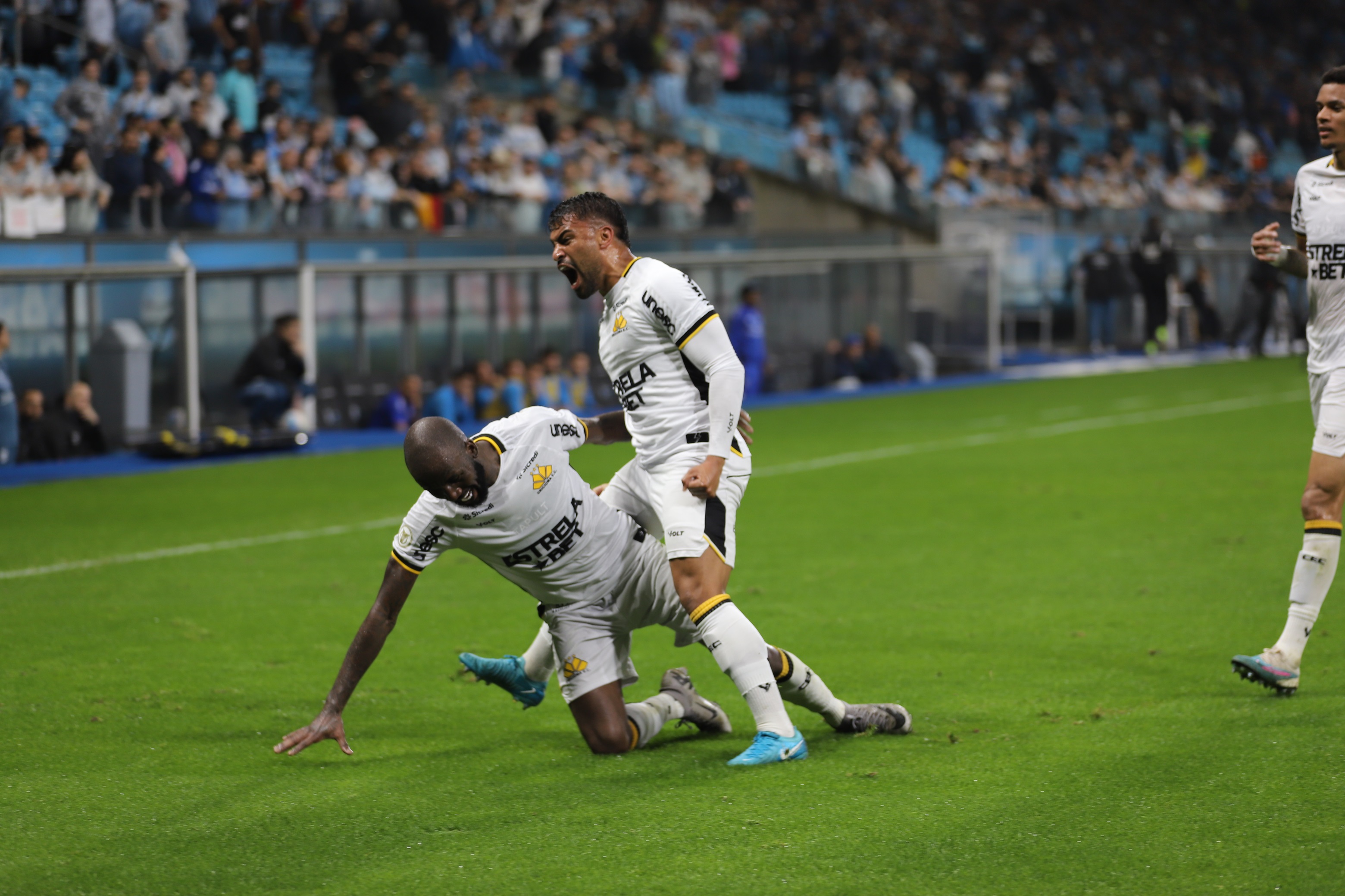 Legenda: Momentos de Grêmio x Criciúma na noite desta quarta-feira (25/09) na 5ª rodada da Série A do Campeonato Brasileiro.