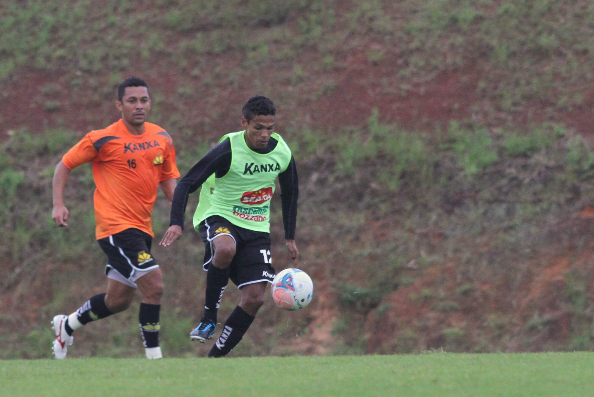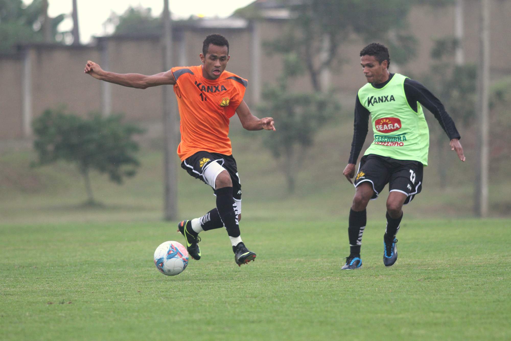 Legenda: Lateral Sueliton (E) e Fabinho (D) durante treino no CT na tarde desta sexta-feira (12/04)