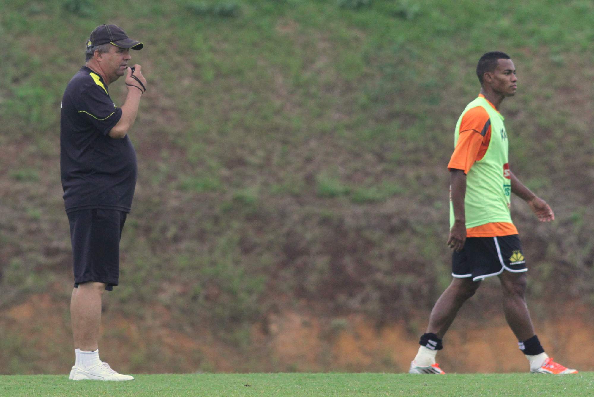 Legenda: Técnico Vadão (E) e Lins (D) durante treino no CT na tarde desta sexta-feira (12/04)